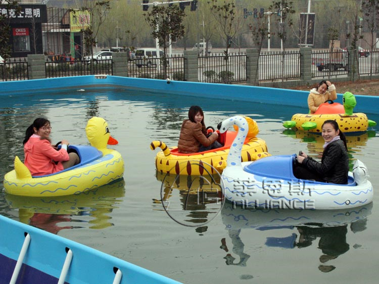 兒童充氣碰碰船采用注塑船體,外圍包裹氣胎作為浮力輔助從而使其漂浮在水面上。采用新型的直流驅動螺旋槳來產生動力的新型游樂設備;充氣胎造型根據兒童流行卡通動物造型制作,深受兒童歡迎。注塑船體內置電磁式電子時間管理器、遙控器和MP3音響設施,方向盤式美觀大方。造型有烏龜、小鴨、天鵝等。 兒童充氣碰碰船是近年來快速興起的新型游樂項目,它獨特的方向盤操作,可以像開車一樣駕駛著小船在水里完成圍追堵截,穿越障礙,相互碰撞等動作,非常吸引小朋友。 此項目投資少,見效快,投入市場后受到游客和經營者的一致好評,它是集科普娛樂為一體的游樂項目,可以培養兒童學科學愛科學的興趣,鍛煉反映和動手動腦的能力。 鄭州萊恩斯游樂設備根據水上游樂市場個性化需求,結合自身的產品設計和研發優勢,研發多種流行充氣碰碰船,取得了水上游樂市場客戶廣泛認可。