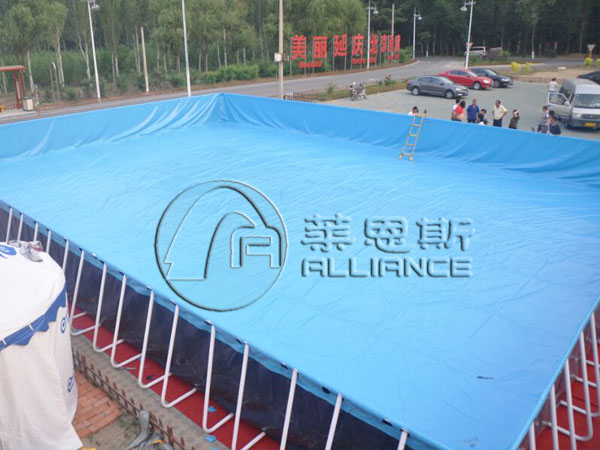 支架游泳池在移動水上樂園中使用比較廣泛,主要是戲水和滑水游樂,目標(biāo)人群定位為親子家庭。這種用途需要結(jié)合具體場地尺寸,可以根據(jù)客戶需要定制不同規(guī)格面積配合各類水上樂園設(shè)備使用。使用多為長方形、正方形和圓形尺寸規(guī)格。常用尺寸為10x15x1.32m和20x40x1.32m等尺寸。