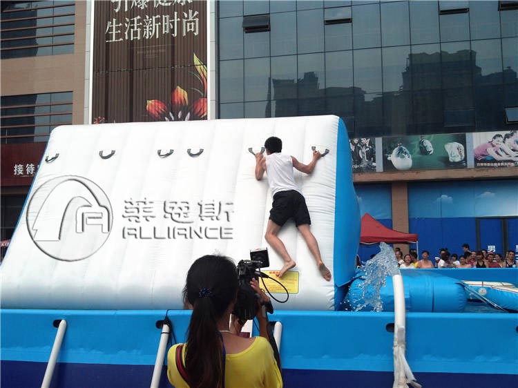 烈日高懸,很多商業活動商都選擇了與水相關的競技娛樂。充氣水上闖關項目,可以由家長和孩子一起參加競技比賽。節目中共設置蜻蜓點水、步步高升、勇往直前、懸崖峭壁、勇登高峰等11個道具關卡,選手需要相互配合,充氣水上闖關在規定時間內走完全程,中途落水者,挑戰失敗。商業活動主辦方指出選手闖關成功即有機會獲得通關大獎。