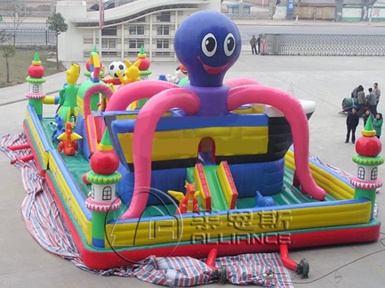 1、原材料:行業一線的原材料供應商,0.48mm夾網環保型PVC材料。2、設計能力:多年專業的游樂設備設計人員。3、生產工藝:下料,縫紉(熱合),粘整(美化),成品。4、質檢程序:自檢---互檢---專檢---終檢目的:杜絕不合格產品進入下道工序,保證產品質量。5、盡可能多的使用雙明線縫制,線跡均勻,針距控制在4.2到4.5mm之間。目的:能夠減少漏氣和增加縫紉部位的拉筋強度。6、粘整刷膠寬度與粘條的寬度誤差不超過正負0.5cm。7、粘整溫度嚴格執行控溫標準。8、充氣城堡造型與大面連接處采用弧線結構。目的是使產品的受力均勻,增加充氣游樂設備的使用壽命。