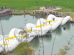 充氣蹦床橋是由多個扭曲圓形的氣胎圈鏈接在一起,顏色搭配為浪漫的白色,給人整體以溫馨浪漫的感覺!這里很是適合情侶一起在上滿玩呢,如果在這么有創意的橋上面來一場漫步...