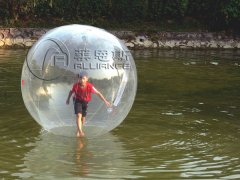水上步行球是一個大型的透明氣球,直徑2米,人被裝在它的"肚子"里,跑跳自如,還能翻跟頭。大水球受到大人和孩子們的追捧,當(dāng)游客進(jìn)入球里后,工作人員用鼓風(fēng)機往里面充氣...