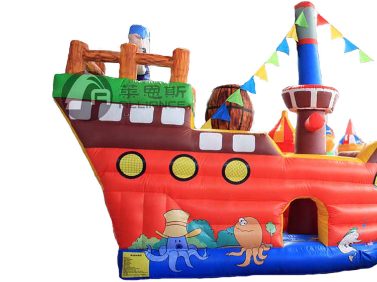 產品名稱:海盜船充氣蹦床產品規格:5*3*5.45m產品材料:0.48±0.02mm環保夾網PVC配置:風機、布料、膠水 供氣方式:風機連續供氣使用壽命:12-14萬人次保修期:產品整體提供三年質量保障,三年內免費提供布料,膠水。業務經理跟蹤服務,幫助客戶解決經營中出現的疑難問題。產品描述 海盜船充氣蹦蹦床造型可愛,非常吸引小朋友。給兒童營造快樂小空間,適合室外使用。適合人群 適合3-10歲兒童。適用場地: 可用于城市廣場、公共休閑空地、公園、操場、景區、度假村、幼兒園學校等場地。溫馨提醒: 在購買產品時,您不但要考慮產品的價格,而且還要考慮產品的質量,優質的材質能提高產品安全保障和使用壽命!