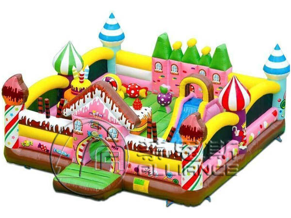產品名稱:蛋糕樂園充氣城堡產品規格:10x8x3.5m(長x寬x高)產品材料:0.48±0.02mm環保夾網PVC配置:風機、布料、膠水供氣方式:風機連續供氣使用壽命:12-14萬人次 保修期:充氣城堡出售后三年內免費提供布料,膠水。業務經理跟蹤服務,幫助客戶解決經營中出現的疑難問題。產品描述: 蛋糕樂園充氣城堡以小朋友喜愛的糖果蛋糕為原型,充氣城堡設置有各種蛋糕和糖果造型,內設置小滑梯,小朋友在里面嬉戲游玩,既鍛煉了身體,又保障了孩子的安全。適合人群: 適合3-10歲小朋友適用場地: 廣場、景區、主題公園、體育館、幼兒園、超市、購物中心等場所!溫馨提醒: 在購買充氣城堡時,您不但要考慮價格,更要重視質量,優質的pvc材質和工藝能提高產品安全保障和使用壽命。
