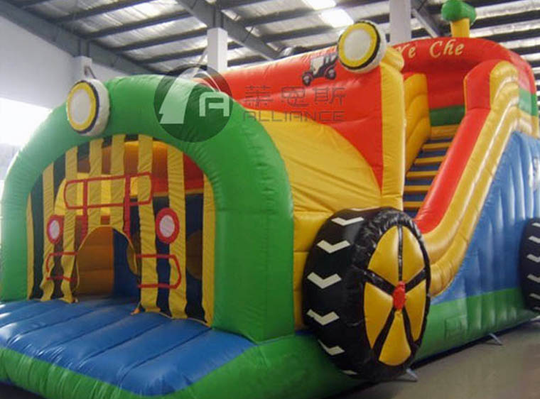 產品名稱:汽車充氣滑梯產品規(guī)格:9*5*5.6m(長*寬*高)產品材料:0.48±0.02mm環(huán)保夾網PVC配置:風機、布料、膠水 供氣方式:風機連續(xù)供氣使用壽命:12-14萬人次保修期:產品整體提供三年質量保障,三年內免費提供布料,膠水。業(yè)務經理跟蹤服務,幫助客戶解決經營中出現的疑難問題。產品描述: 汽車充氣滑梯,整體造型設計成為一輛老式卡車,小朋友從前邊引擎進入,從側面滑梯上滑下來,非常吸引男孩子喜歡。適合人群: 適合3-12歲兒童。適用場地: 可用于城市廣場、公共休閑空地、公園、操場、景區(qū)、度假村、幼兒園學校等場地。溫馨提醒: 在購買充氣滑梯時,您不但要考慮產品的價格,而且還要考慮產品的質量,優(yōu)質的材質和工藝能提高產品安全保障和使用壽命!
