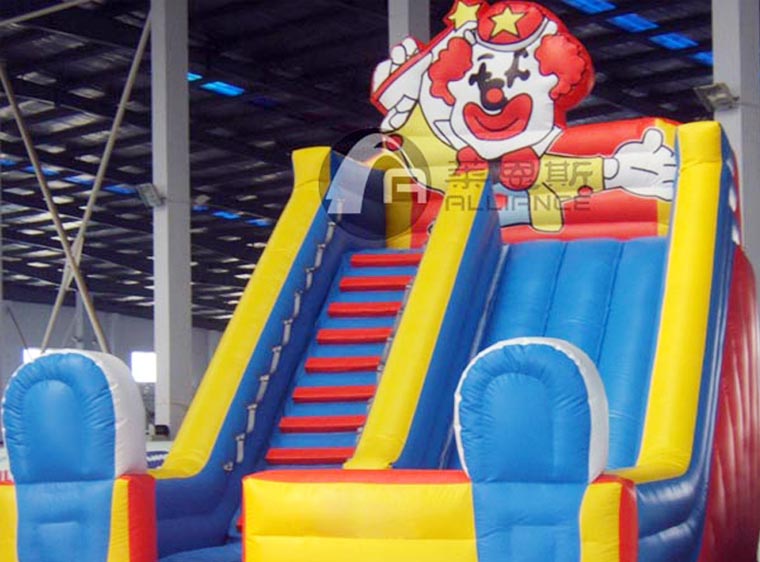 產品名稱:小丑充氣滑梯產品規格:7.5*4*5.6m(長*寬*高)產品材料:0.48±0.02mm環保夾網PVC配置:風機、布料、膠水 供氣方式:風機連續供氣使用壽命:12-14萬人次保修期:產品整體提供三年質量保障,三年內免費提供布料,膠水。業務經理跟蹤服務,幫助客戶解決經營中出現的疑難問題。產品描述: 小丑充氣滑梯整體造型簡單可愛,非常吸引小朋友。適合人群: 適合3-12歲兒童。適用場地: 可用于城市廣場、公共休閑空地、公園、操場、景區、度假村、幼兒園學校等場地。溫馨提醒: 在購買充氣滑梯時,您不但要考慮產品的價格,而且還要考慮產品的質量,優質的材質和工藝能提高產品安全保障和使用壽命!