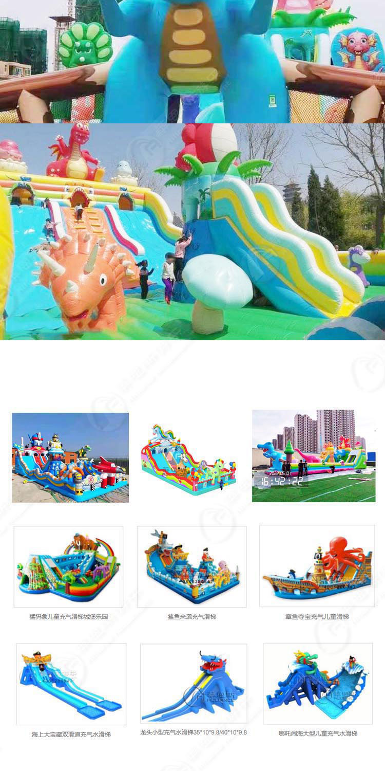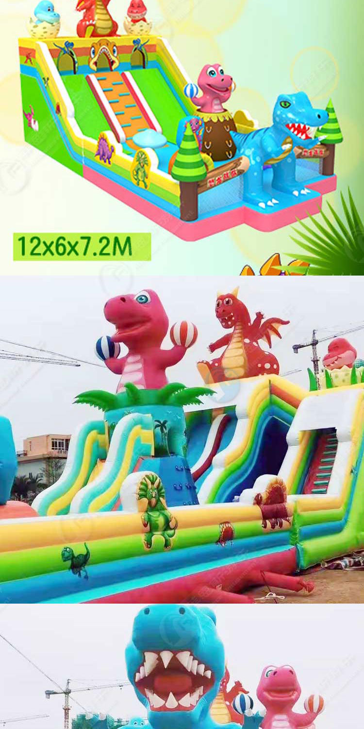 恐龍戰(zhàn)隊(duì)充氣滑梯城堡造型逼真、色彩鮮艷,玩法多樣,滿(mǎn)足小朋友的跳、爬、騎、滑、攀、鉆等新奇的活動(dòng)方式,促進(jìn)智力開(kāi)發(fā)、鍛煉身體,愉悅身心的目的。