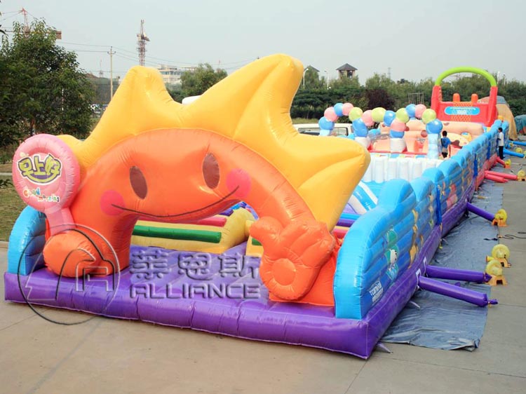 保修期:充氣沖關設備出售后三年內免費提供布料,膠水。業務經理跟蹤服務,幫助客戶解決經營中出現的疑難問題。