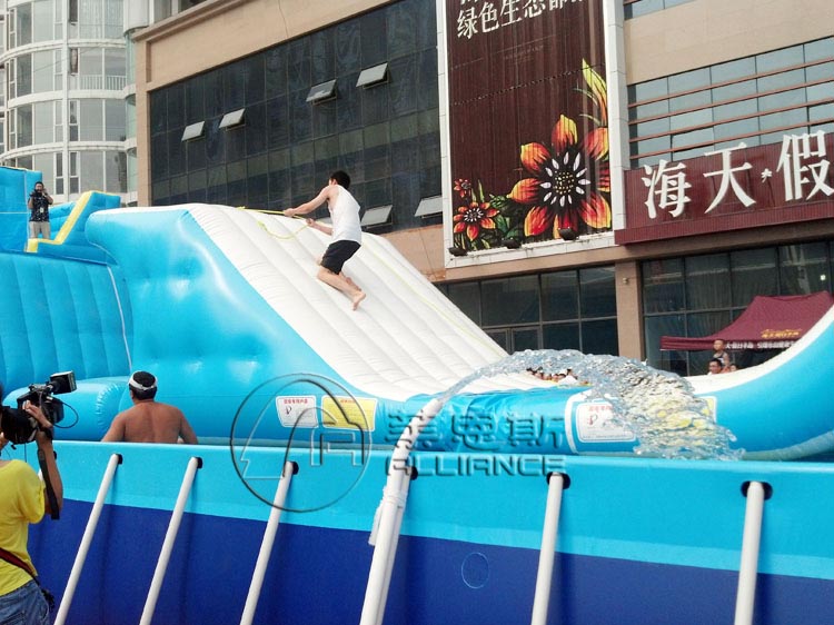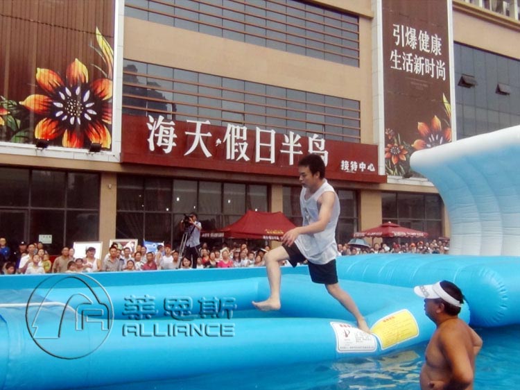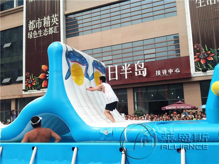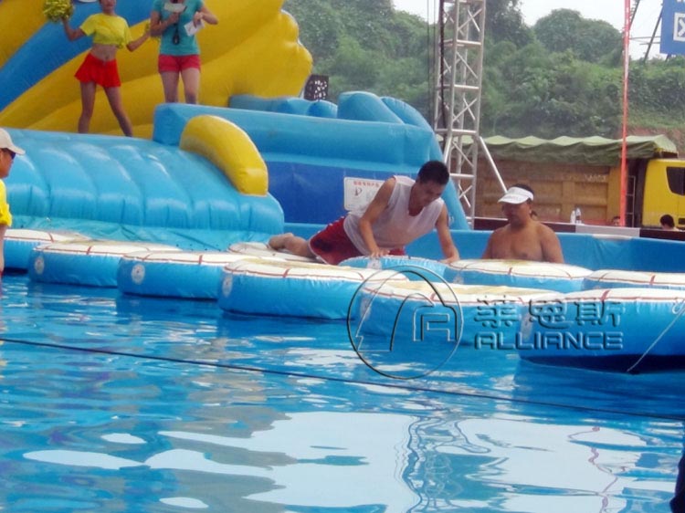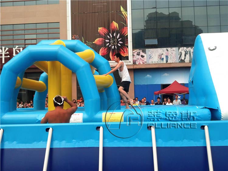 產品名稱:大型充氣水上沖關設備產品規格:55x10x8m搭配支架水池:10x40x1.32m產品材料:0.85±0.02mm環保夾網PVC配置:風機、布料、膠水 保修期:充氣水上沖關設備三年內免費提供布料,膠水。業務經理跟蹤服務,幫助客戶解決經營中出現的疑難問題。產品描述: 大型充氣水上沖關設備借助支架游泳池,在水池中鋪設充氣玩具,有攀爬、翻越、穿行、跳躍等具備一定難度的管卡。是一項集智慧、力量、運動、娛樂、競技、休閑為一體的大型水上娛樂設備。關卡介紹:1.起始舞臺2.蜻蜓點水3.手忙腳亂4.太空漫步5.魚躍龍門6.孤注一跳7.步步驚心8.勇攀高峰。適用場地: 適用范圍廣泛,不光可用于游樂園、度假村、景區、主題公園、體育館,還適用于小河,湖泊,海邊等一些自然水域!除了可以在日常經營活動場所使用還可與房地產商、商場、廣播電視媒體合作,為吸引人氣舉辦各種促銷以及沖關活動等。適合人群: 適合10歲以上青少年朋友。溫馨提醒: 在購買充氣水上沖關設備時,您不但要考慮產品的價格,而且還要考慮產品的質量,優質的pvc材質和附件能提高產品安全保障和使用壽命,為您帶來更持久的利潤回報 。