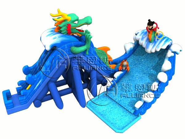 哪吒鬧海浪擺大型兒童充氣水滑梯和以往常規滑梯玩法特別之處在于游客可以體驗急速下降、急速上升的刺激體驗,玩法多種多樣,可以帶皮筏游玩也可以赤身游玩,該產品適用于各類大型移動水上樂園。