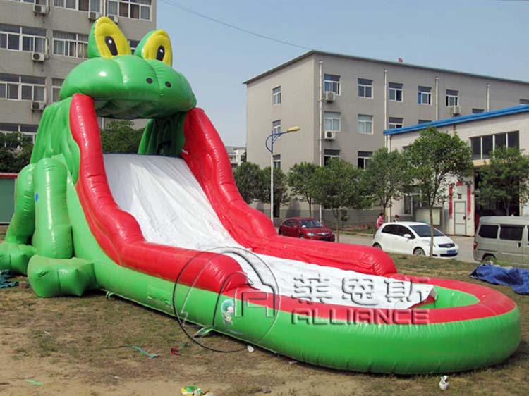 產(chǎn)品名稱:青蛙II型充氣水滑梯產(chǎn)品規(guī)格:12.8*4.8*5.5m產(chǎn)品材料:一等環(huán)保夾網(wǎng)pvc配置:風(fēng)機(jī)、布料、膠水充氣方式:連續(xù)性充氣使用壽命:10-12萬人次保修期:3年產(chǎn)品描述: 青蛙II型充氣水滑梯造型逼真,青蛙舌頭為滑梯梯身,末端為一體式充氣水池。適合做為移動(dòng)水上樂園設(shè)備。適合人群: 3-16歲兒童適用場(chǎng)地: 可用于城市廣場(chǎng)、公共休閑空地、公園、操場(chǎng)、景區(qū)、度假村、體育場(chǎng)館、城鄉(xiāng)結(jié)合空曠處和小河、湖泊、海邊等區(qū)域,無需基建,設(shè)施可移動(dòng)組合,不長(zhǎng)期占用、傷害場(chǎng)地。溫馨提醒 在購(gòu)買充氣水滑梯時(shí),您不但要考慮價(jià)格,更要重視質(zhì)量,優(yōu)質(zhì)的pvc材質(zhì)能提高產(chǎn)品安全保障和使用壽命。