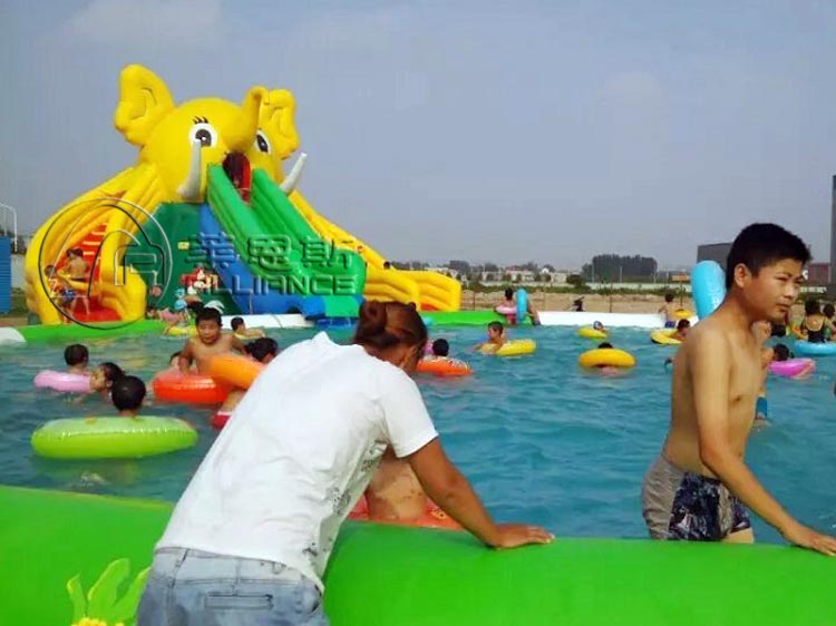 產品名稱:大象充氣水滑梯產品規格:8.6*9*6.7m選配水池:充氣水池產品材料:一等環保夾網pvc配置:風機、布料、膠水充氣方式:連續性充氣使用壽命:10-12萬人次保修期:3年產品描述: 大象充氣水滑梯造型經典,神態可愛,非常受小孩子喜愛。可以搭配充氣水池作為兒童戲水樂園。適合做為移動水上樂園設備。適合人群: 3-16歲兒童適用場地: 可用于城市廣場、公共休閑空地、公園、操場、景區、度假村、體育場館、城鄉結合空曠處和小河、湖泊、海邊等區域,無需基建,設施可移動組合,不長期占用、傷害場地。溫馨提醒 在購買充氣水滑梯時,您不但要考慮價格,更要重視質量,優質的pvc材質能提高產品安全保障和使用壽命。
