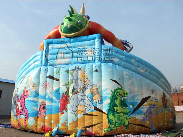 產(chǎn)品名稱:怪獸來襲充氣水滑梯產(chǎn)品規(guī)格:12.8*9.5*11.6m選配水池:直徑20m充氣水池產(chǎn)品材料:一等環(huán)保夾網(wǎng)pvc配置:風(fēng)機(jī)、布料、膠水充氣方式:連續(xù)性充氣使用壽命:10-12萬人次保修期:3年產(chǎn)品描述: 怪獸來襲充氣水滑梯是小朋友喜愛的卡通動漫節(jié)目,此款水滑梯借助怪獸造型,營造了身臨動漫世界的刺激感,特別收到男孩子的喜愛。水滑梯下面連接充氣水池,適合做為移動水上樂園設(shè)備。適合人群: 3-16歲兒童適用場地: 可用于城市廣場、公共休閑空地、公園、操場、景區(qū)、度假村、體育場館、城鄉(xiāng)結(jié)合空曠處和小河、湖泊、海邊等區(qū)域,無需基建,設(shè)施可移動組合,不長期占用、傷害場地。溫馨提醒 在購買充氣水滑梯時,您不但要考慮價格,更要重視質(zhì)量,優(yōu)質(zhì)的pvc材質(zhì)能提高產(chǎn)品安全保障和使用壽命。