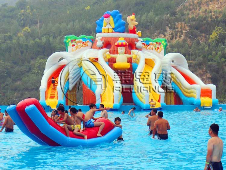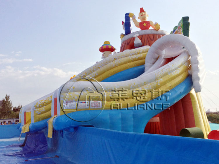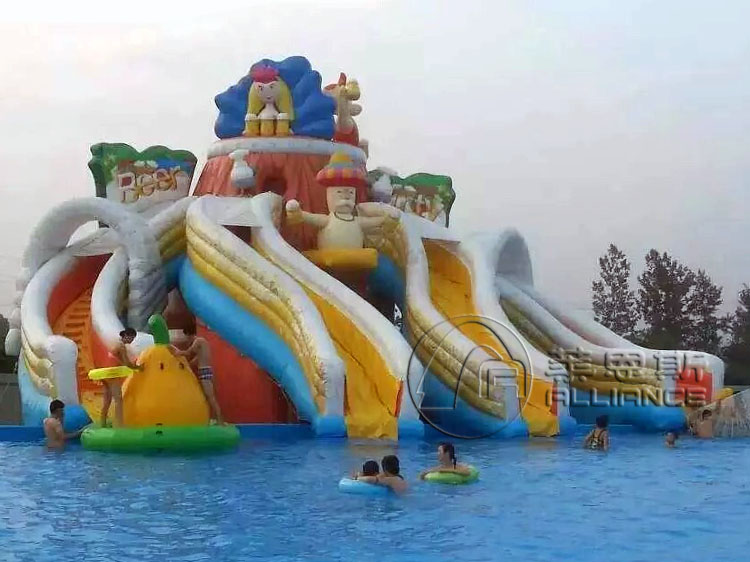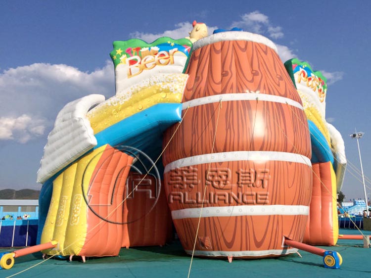 產品名稱:啤酒充氣水滑梯產品規格:12*14*10m選配水池:支架游泳池產品材料:一等環保夾網pvc配置:風機、布料、膠水充氣方式:連續性充氣使用壽命:10-12萬人次保修期:3年產品描述: 啤酒水滑梯很好地融入夏季受歡迎飲品啤酒造型元素,讓小朋友們體驗啤酒帶來的醉意,樂于其中,流連忘返,又給人鋪面而來清爽涼意。啤酒水滑梯設計四個彎曲滑道,滑道下面需要連接不同尺寸支架游泳池,可容納更多小朋友同時嬉水互動。適合做為移動水上樂園設備。適合人群: 3-16歲兒童適用場地: 可用于城市廣場、公共休閑空地、公園、操場、景區、度假村、體育場館、城鄉結合空曠處和小河、湖泊、海邊等區域,無需基建,設施可移動組合,不長期占用、傷害場地。溫馨提醒 在購買充氣水滑梯時,您不但要考慮價格,更要重視質量,優質的pvc材質能提高產品安全保障和使用壽命。