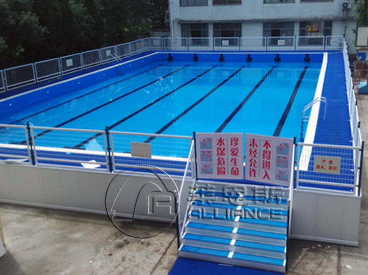 產品名稱:拆裝式游泳池產品規格:15*25*1.2M/25*50*1.2M,可根據尺寸定制產品材料:鋼配置:全自動水循環系統使用壽命:15年保修期:8年產品描述: 拆裝式游泳池由池體(池岸、上下水扶梯、安全護欄等)和全套水處理消毒設備(循環過濾設備、投藥消毒器)組成。池體由鋼結構框架、鋼結構溢水槽、內襯膠膜、內圍板、池底保護墊以及進出池扶梯等其它構件組成。水處理消毒設備由泳池專用泵、玻璃鋼過濾沙缸、投藥消毒器、循環管路及配件、進出布水口組成。拆裝式游泳池常規形狀為長方形,長寬尺寸在15M-50M之間,也可以根據場地大小定做適合場地的游泳池尺寸。游泳池的高度和水深同達到1.2M,四周平臺走道寬度為1.5M。適合人群: 適合6-40歲人群適用場地: 各類學校、體育館、游泳館、度假村等場所!溫馨提醒 在購買產品時,您不但要考慮產品的價格,而且還要考慮產品的質量,優質的材料和做工能提高產品安全保障和使用壽命。