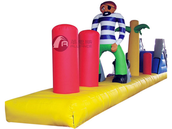 產品名稱:充氣水上過橋產品規格:12*1.6*3.5m產品材料:pvc夾網布料充氣方式:一次性充氣產品介紹: 充氣水上玩具做為水上游樂設備的有利補充,極大的增加了嬉水的樂趣,孩子可以在充氣水上玩具上玩耍、躲藏、滑行、歇息,趣味無窮。 充氣水上玩具雖然尺寸小,但是漂浮在水面上,是“會動”的,能帶動整個水上樂園的“樂趣”,如一幅畫的點睛之筆,在水上游樂設備中起到重要作用,不可或缺!產品特點: 1、全部采用夾網pvc專用布料,氣密性、耐磨性強 2、采用進出一體氣閥,使用方便、安全、可靠 3、船體全部采用高頻熱和工藝制作 4、材料色牢度高、布面顏色歷久如新適合人群: 5-50歲人群適用場地: 可用于各種水上樂園,嬉水池、游泳池等淺水面游樂。溫馨提醒: 在購買充氣水上玩具時,您不但要考慮價格,更要重視質量,優質的pvc材質能提高產品安全保障和使用壽命。