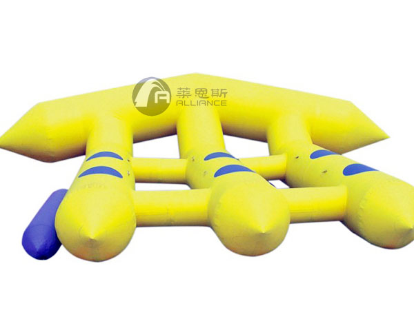 產品名稱:充氣飛魚產品規格:5.3*4.8m產品材料:pvc夾網布料充氣方式:一次性充氣產品介紹: 充氣水上玩具做為水上游樂設備的有利補充,極大的增加了嬉水的樂趣,孩子可以在充氣水上玩具上玩耍、躲藏、滑行、歇息,趣味無窮。 充氣水上玩具雖然尺寸小,但是漂浮在水面上,是“會動”的,能帶動整個水上樂園的“樂趣”,如一幅畫的點睛之筆,在水上游樂設備中起到重要作用,不可或缺!產品特點: 1、全部采用夾網pvc專用布料,氣密性、耐磨性強 2、采用進出一體氣閥,使用方便、安全、可靠 3、船體全部采用高頻熱和工藝制作 4、材料色牢度高、布面顏色歷久如新適合人群: 5-50歲人群適用場地: 可用于各種水上樂園,嬉水池、游泳池等淺水面游樂。溫馨提醒: 在購買充氣水上玩具時,您不但要考慮價格,更要重視質量,優質的pvc材質能提高產品安全保障和使用壽命。