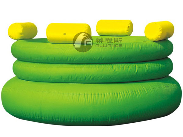 產品名稱:充氣水上四人座椅產品規格:直徑2m,高1m產品材料:pvc夾網布料充氣方式:一次性充氣產品介紹: 充氣水上玩具做為水上游樂設備的有利補充,極大的增加了嬉水的樂趣,孩子可以在充氣水上玩具上玩耍、躲藏、滑行、歇息,趣味無窮。 充氣水上玩具雖然尺寸小,但是漂浮在水面上,是“會動”的,能帶動整個水上樂園的“樂趣”,如一幅畫的點睛之筆,在水上游樂設備中起到重要作用,不可或缺!產品特點: 1、全部采用夾網pvc專用布料,氣密性、耐磨性強 2、采用進出一體氣閥,使用方便、安全、可靠 3、船體全部采用高頻熱和工藝制作 4、材料色牢度高、布面顏色歷久如新適合人群: 5-50歲人群適用場地: 可用于各種水上樂園,嬉水池、游泳池等淺水面游樂。溫馨提醒: 在購買充氣水上玩具時,您不但要考慮價格,更要重視質量,優質的pvc材質能提高產品安全保障和使用壽命。
