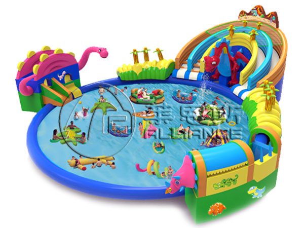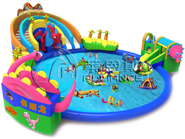 產品描述: 恐龍充氣水上樂園主題是霸王龍與雷龍嬉水的場面,采用環抱形狀,多種攀爬、涵洞、滑梯等造型。小朋友置身與恐龍一起嬉水的刺激體驗。非常適合做為移動水上樂園設備。