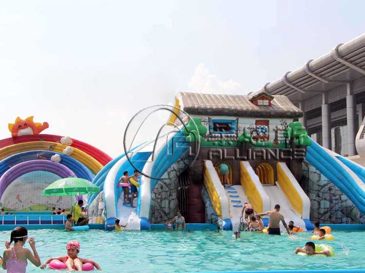 產(chǎn)品描述:移動水上樂園主要由充氣水滑梯搭配支架游泳池和充氣游泳池,分為深水區(qū)和淺水區(qū),配合多種水上充氣玩具組建而成。這些水上樂園設(shè)備造型逼真,趣味豐富,玩法多樣,深受家長和孩子喜愛,滿足家庭親子嬉水需要!